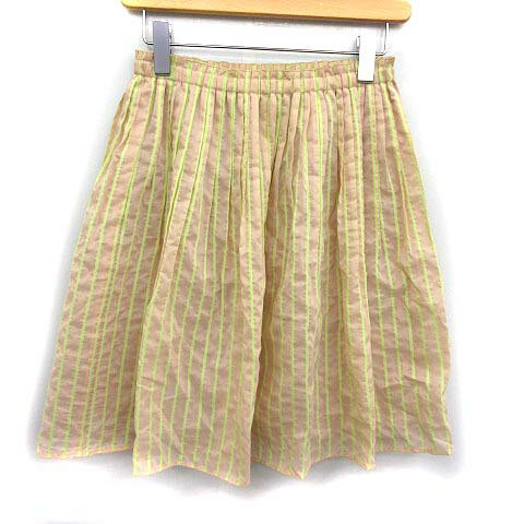 【中古】アルアバイル allureville スカート ギャザー フレア ひざ丈 ストライプ 2 ベージュ イエロー 黄色 /KH ■BR レディース 【ベクトル 古着】 190718 ベクトルプレミアム店